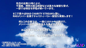 【緊急告知】RAD CHARITY STREAMを実施します!