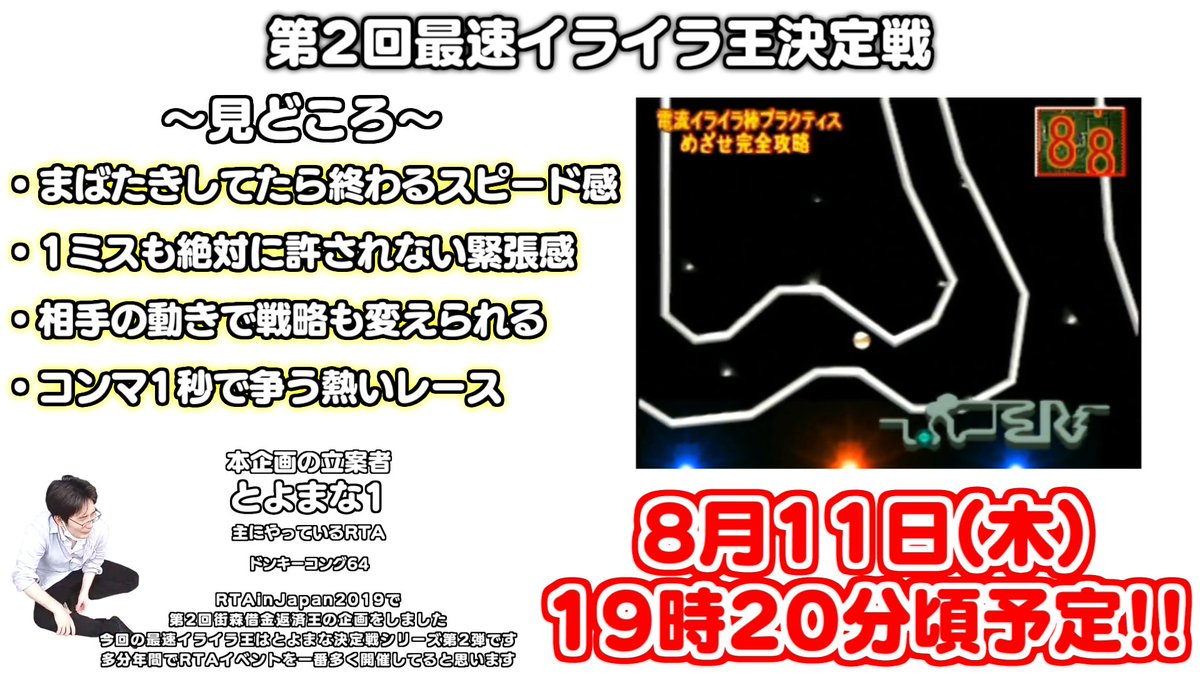 視聴者数60000名達成!RTA in Japan Summer 2022にtoyomana氏持ち込み企画『最速イライラ王決定戦』が採用!
