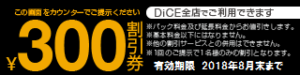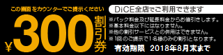 DiCE全店用割引券【300円】 8月末